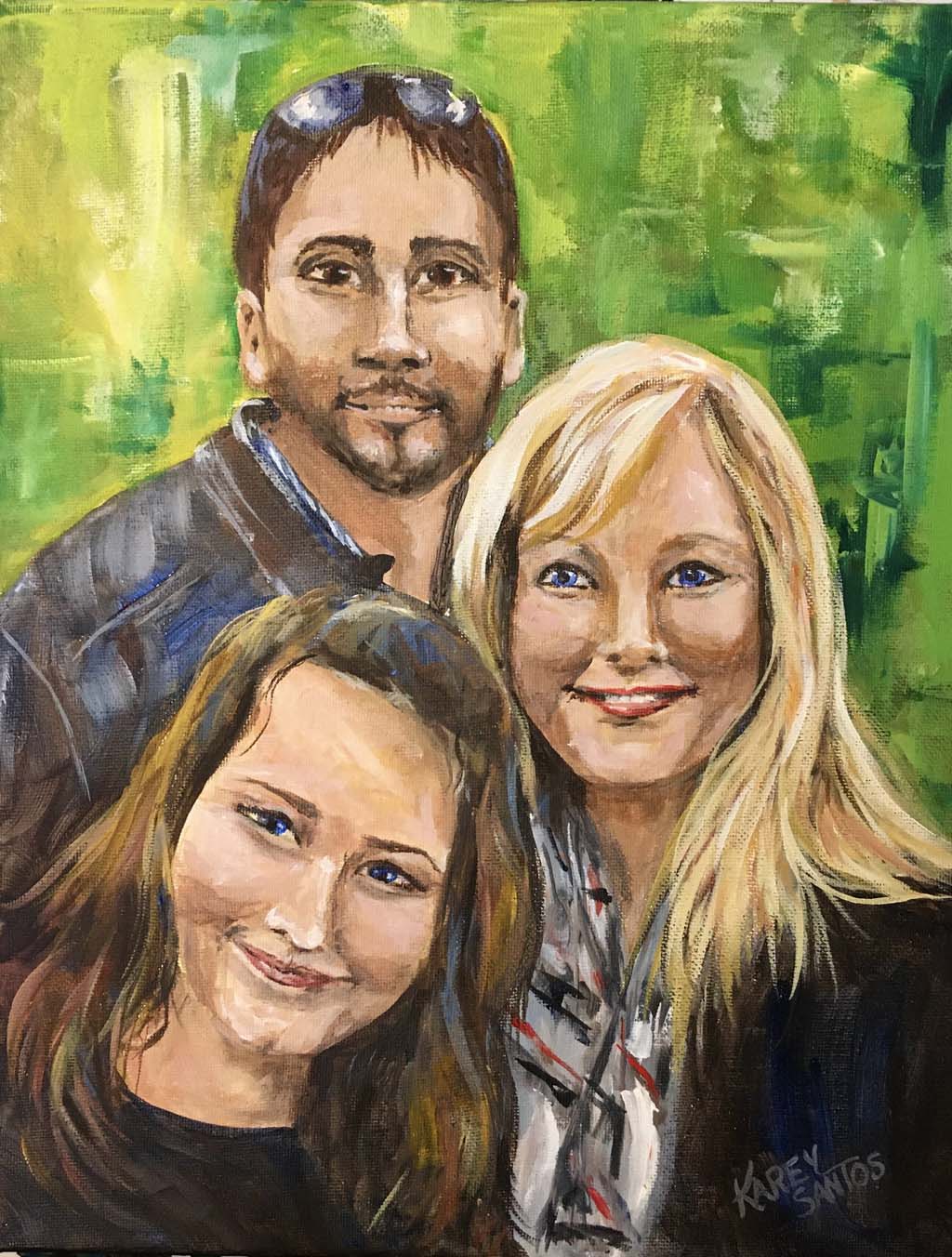 Prices listed below are for canvas board or wrapped canvas works and are provided as a guide.  A non-refundable deposit of 20% is required for all commissioned work.  Specific pieces may be subject to an elevated cost, in relation to the subject matter (e.g., single canvas – multiple portraits, detail architecture, writing/script, etc.).  Shipping and handling charges are an additional 20%